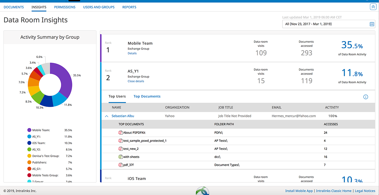 - Intralinks veiligheidsprotocollen voor haar datarooms voldoen aan de GDPR-normen. De bijbehorende veiligheidsmaatregelen omvatten het intrekken van documenten en granulaire gebruikersrechten.
